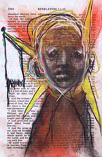 Bible Page Series - A White Flag in Heaven 5.5 x 8.5" [Original Charcoal & Pastel Drawing Framed]